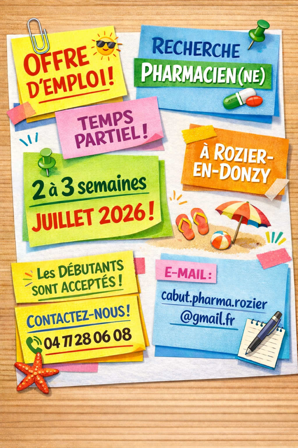 CDD dans une petite officine de village pour compléter l'équipe durant les vacances estivales.